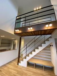 主寝室からトイレ、洋室につながる2階通路にはアイアン手摺を採用し、カッコイイ空間にしました