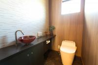 お手洗いの壁にも木目を使い落ち着いた空間に仕上がりました。
