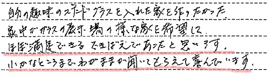 洗面のステンドグラスは竹がモチーフです。こちらも和を感じますね。