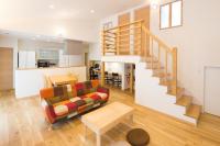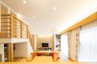 広いリビングから子供部屋に上る8段の階段がリビングをお洒落に演出。