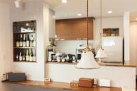 可愛いペンダントライトと お施主様こだわり💕お酒のディスプレー用の造作棚