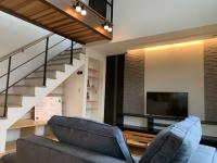 このお家の見どころである、吹き抜けに設けられた主寝室から洋室やトイレにつながる橋を思わす通路です♩通路下にレッドシダーを採用しました