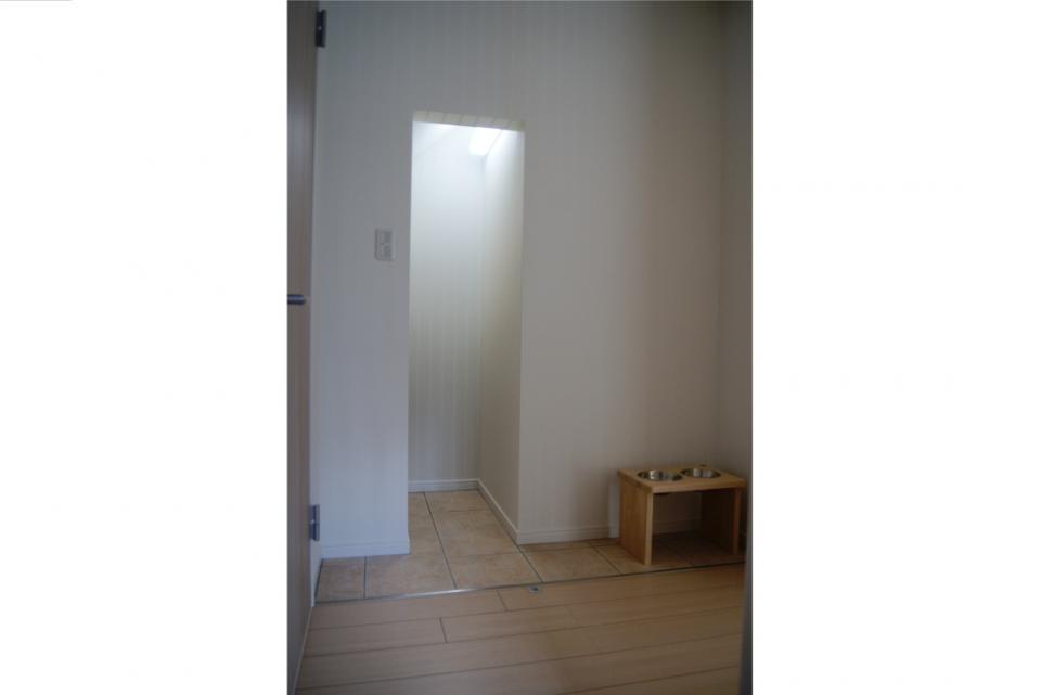愛犬るなちゃんの専用スペース。床がタイルにしてあるので、傷などの心配も不要です。