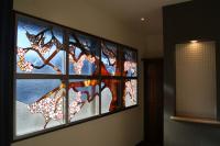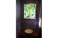 洗面のステンドグラスは竹がモチーフです。こちらも和を感じますね。