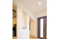 明るい玄関のアーチの垂れ壁の奥には土間収納があり家族の靴や上着などを収納できます。