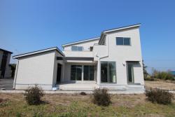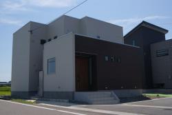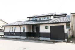 白色のサイディングを基調とし、アクセントに木目調のサイディングを採用しました♪