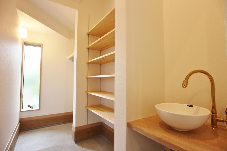 玄関を奥に進むと、手洗い場やシューズクローゼット、クローゼットがあります。