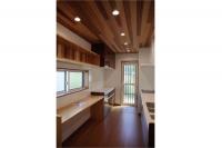 レッドシダーの天井のキッチン また違った表情の木が空間を彩ります